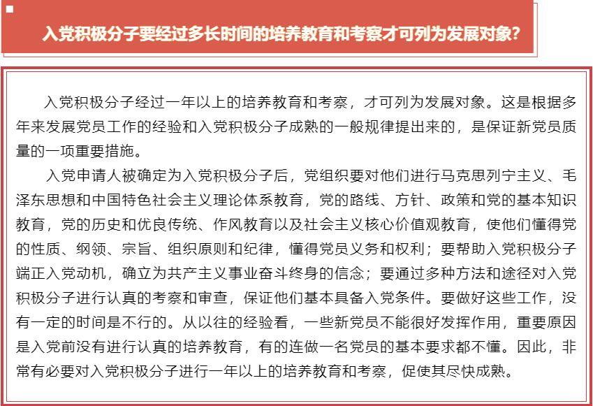 党务知识 | 入党积极分子要经过多长时间的培养教育和考察才可列为发展对象?